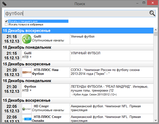 - Поиск передач по всей телепрограмме